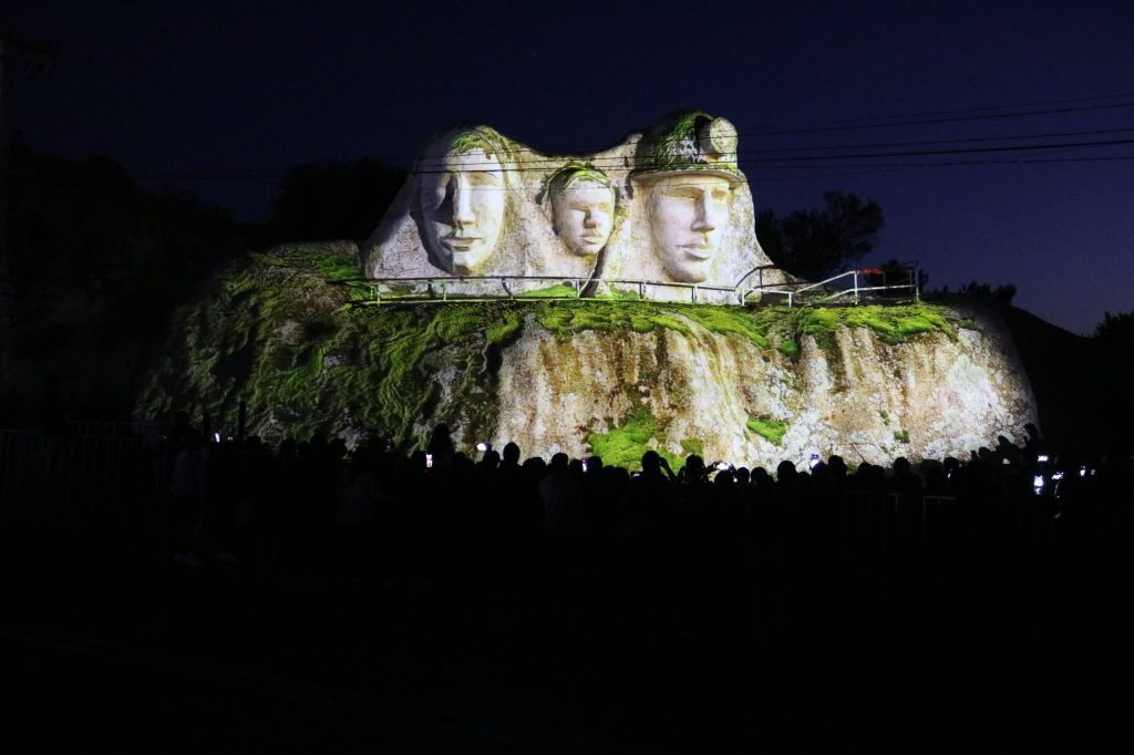 Simplemente maravilloso. Así fue el mapping que hizo que el monumento de la Familia Minera cobrara vida, espectáculo de luces a cargo de la compañía Teatro del Homenaje, inspirado en la identidad local de Machalí y, por supuesto, en su estrecho vínculo con el desarrollo de El Teniente y la gran minería del cobre.